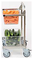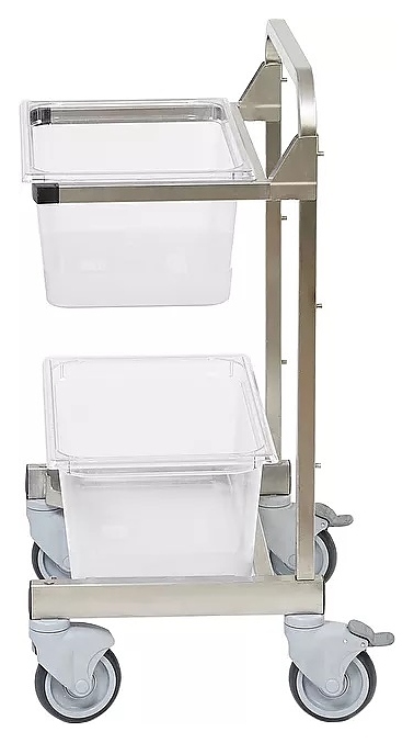 - Тележка с роликами для лёгкого перемещения, на неё можно установить стандартные гастроёмкости для высокой производительности