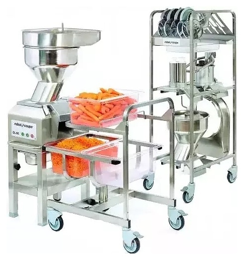 Овощерезка Robot Coupe CL60 используется на предприятиях общественного питания и торговли для нарезки овощей, фруктов, грибов, твердого сыра и колбас и дальнейшего использования их в качестве ингредиентов для приготовления супов, салатов, гарниров и пр. Модель оснащена 3 загрузочными отверстиями: широкой воронкой XL с рычагом для нарезки объёмных овощей (вмещает до 15 помидоров и качан капусты целиком), воронкой с 4 трубками, автоматической и цилиндрической - длинных и нежных. Корпус полностью выполнен из нержавеющей стали.