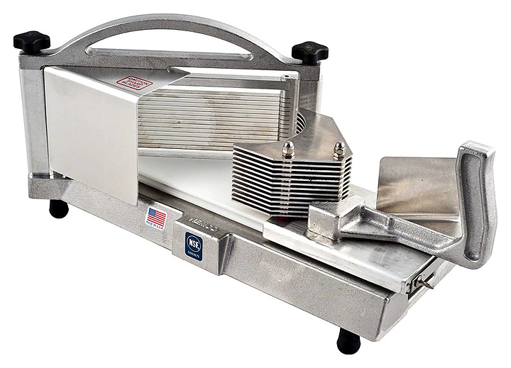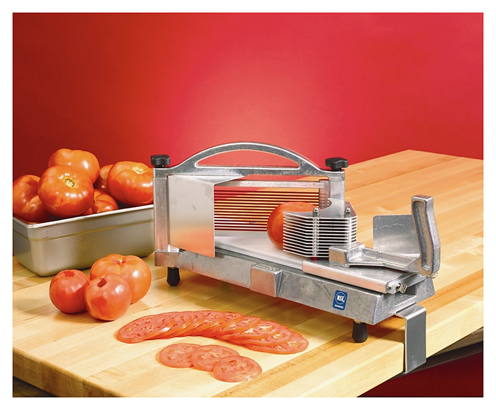 Овощерезка-слайсер Nemco 56600-1 используется на предприятиях общественного питания и торговли для нарезки томатов на бутерброды, пиццу и в салаты. Модель оснащена эргономичной ручкой, полиэтиленовой доской-основанием, самосмазывающимися направляющими, резиновыми ножками и насадками против скольжения. Корпус и ручка выполнены из алюминия, ножи - из нержавеющей стали, рабочая поверхность - из плотного полиэтилена с антибактериальным покрытием.