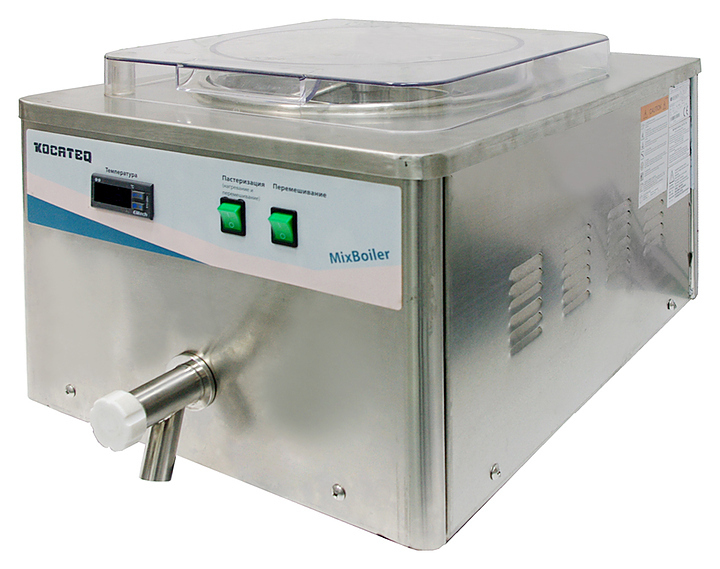Пастеризатор Kocateq MIX15C предназначен для приготовления заварных кремов и соусов, пастеризации смеси и дальнейшего ее использования в батч-фризере, где происходит процесс приготовления мороженого, на предприятияx общественного питания и торговли. Модель оснащена защитным термостатом. Корпус выполнен из нержавеющей стали AISI 304.