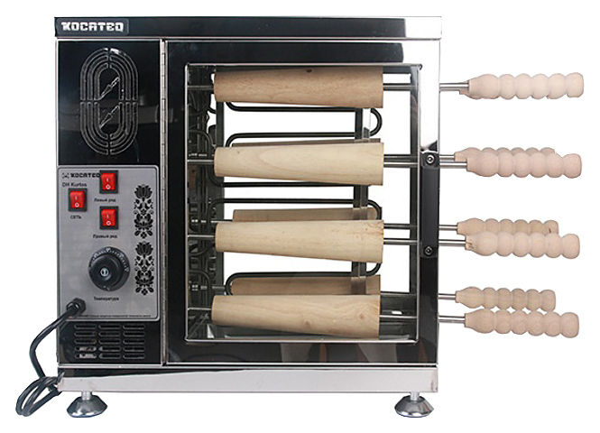Настольная печь для трдельников Kocateq DHKurtos NW используется на предприятиях общественного питания и торговли, в пекарнях и кондитерских для выпечки до 8 венгерских калачей. Сдобное тесто раскатывается в тонкий жгут, наматывается на валки и запекается. Модель оснащена панелью управления и термостатом для автоматического поддержания температуры. Корпус выполнен из нержавеющей стали AISI 201, ножки - из металла, с пятками - из пластика.