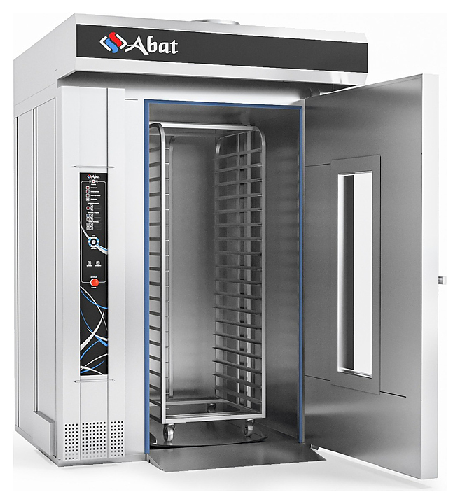 Ротационный пекарский шкаф Abat РПШ-18-8-6ШР предназначен для приготовления хлебобулочных и кондитерских изделий, различных блюд методом обработки паром и горячим воздухом по отдельности или комбинированно на предприятиях общественного питания и торговли. Модель оснащена 4 лампами для подсветки.