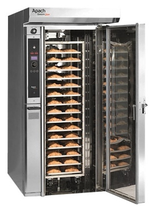 - Первая ротационная печь, которая может выпекать всего несколько противней (если полная загрузка тележки не всегда нужна), используя строго необходимое количество электроэнергии