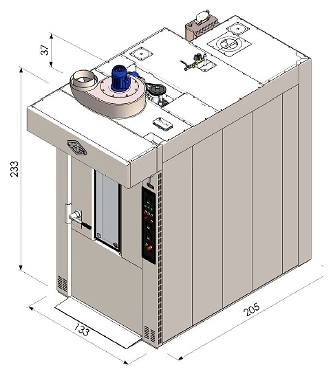 - Вместимость: 1 тележка 650x920 мм на 15 или 18 уровней