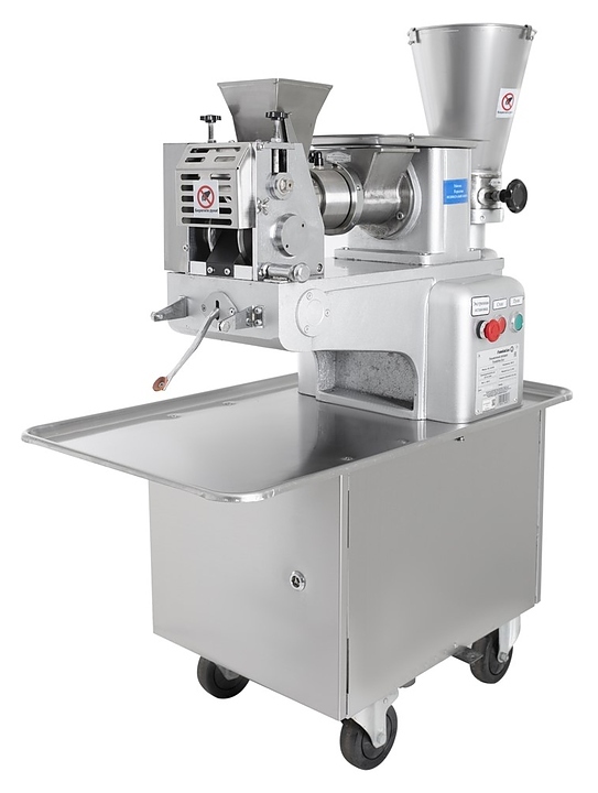 Пельменный аппарат Foodatlas JGL 120-5B Eco используется на предприятиях общественного питания и торговли для производства замороженных мясных полуфабрикатов в составе пельменной линии. Модель оснащена опорными колесами с стстемой стопорных механизмов. Станина выполнена из чугуна.
