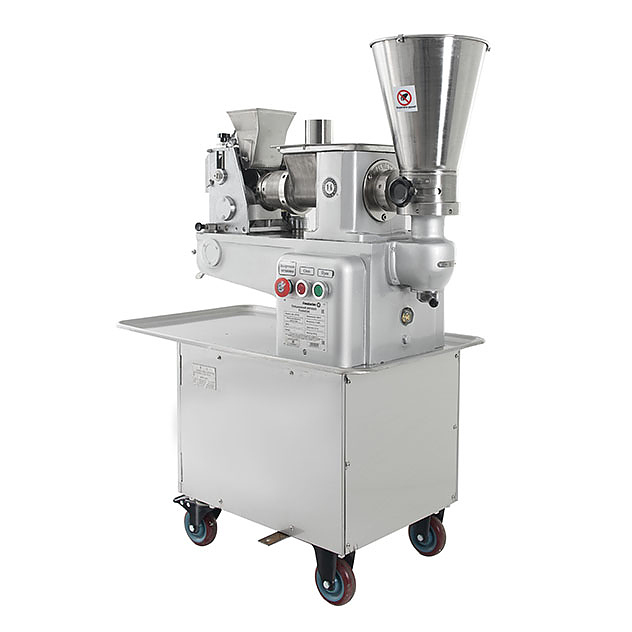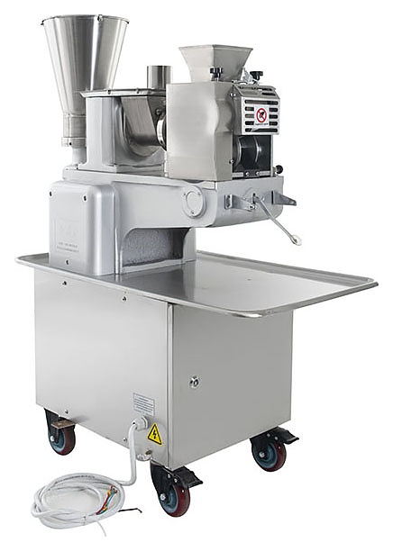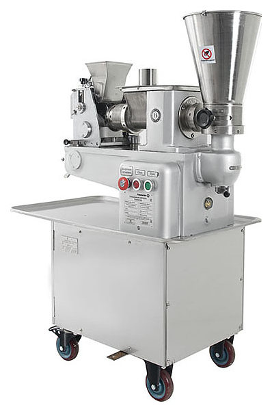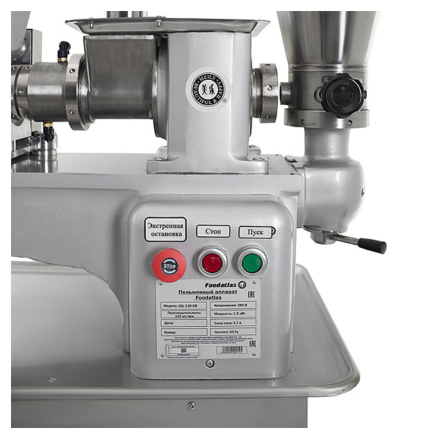 Пельменный аппарат Foodatlas JGL 135-5B (AR) используется на предприятиях пищевой промышленности, общественного питания и торговли для производства пельменей, равиоли, вареников и других замороженных мясных полуфабрикатов в форме полумесяца. Модель оснащена двухступенчатым лопастным насосом, формовочным барабаном с функцией автоматической подсыпки муки для предотвращения прилипания теста и опорными колесами с системой стопорных механизмов для блокировки станины. Корпус выполнен из нержавеющей стали, станина - из чугуна.