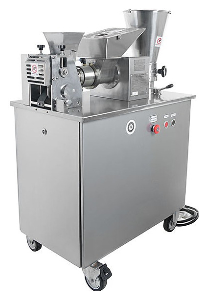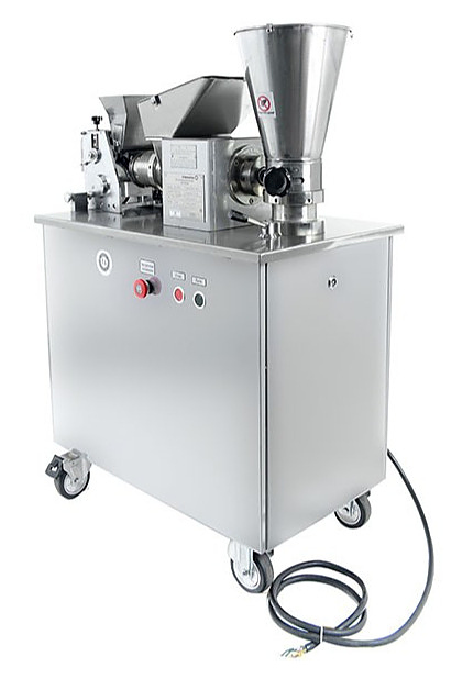 Пельменный аппарат Foodatlas JGL135-6A используется на предприятиях пищевой промышленности, общественного питания и торговли для производства пельменей, равиоли, вареников и других замороженных мясных полуфабрикатов в форме полумесяца. Модель оснащена двухступенчатым лопастным насосом, формовочным барабаном с функцией автоматической подсыпки муки для предотвращения прилипания теста и опорными колесами с системой стопорных механизмов для блокировки станины. Корпус и станина выполнены из нержавеющей стали.