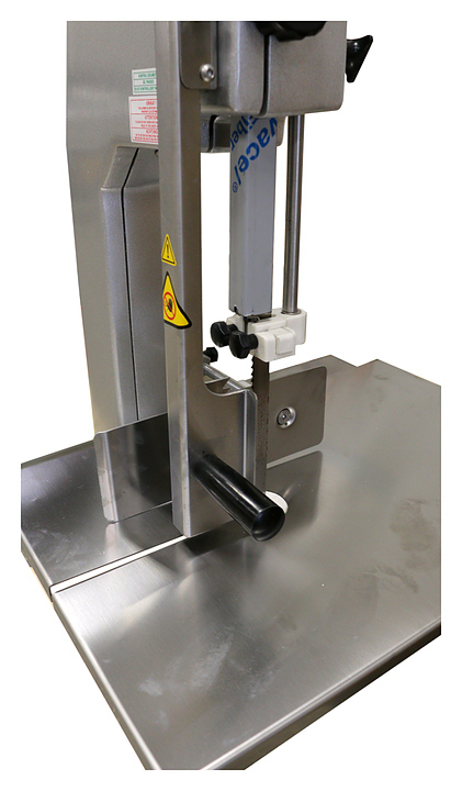 Пила для мяса Empero EMP.ETK.01 используется на предприятиях пищевой промышленности и торговли для нарезки на куски свежего и замороженного мяса, в том числе с костями, рыбы и птицы. Модель оснащена легко регулируемым держателем для мяса и системой аварийной остановки?. Корпус выполнен из анодированного алюминия, рабочая поверхность и лезвие - из нержавеющей стали.