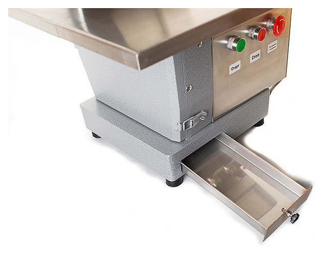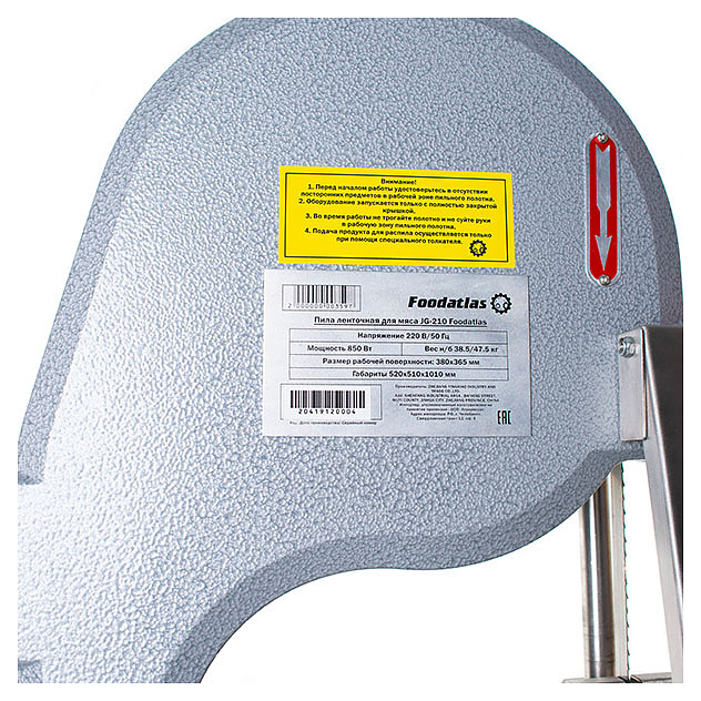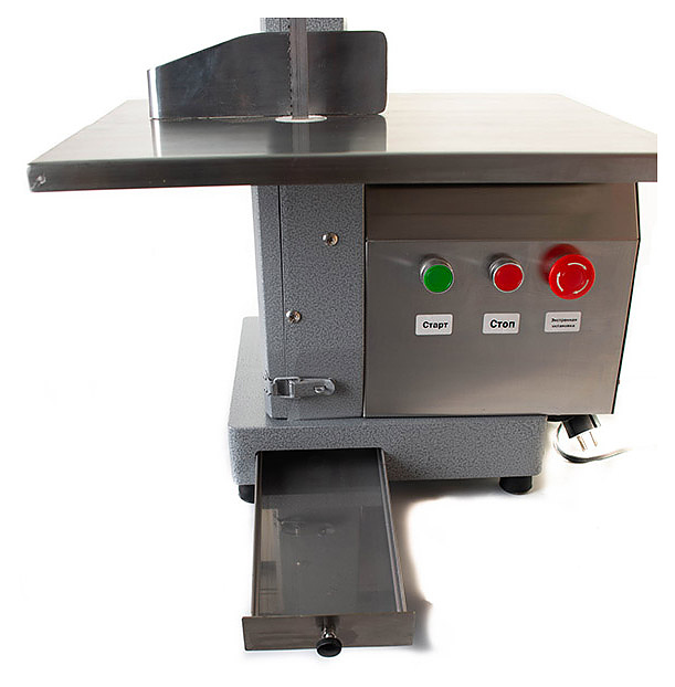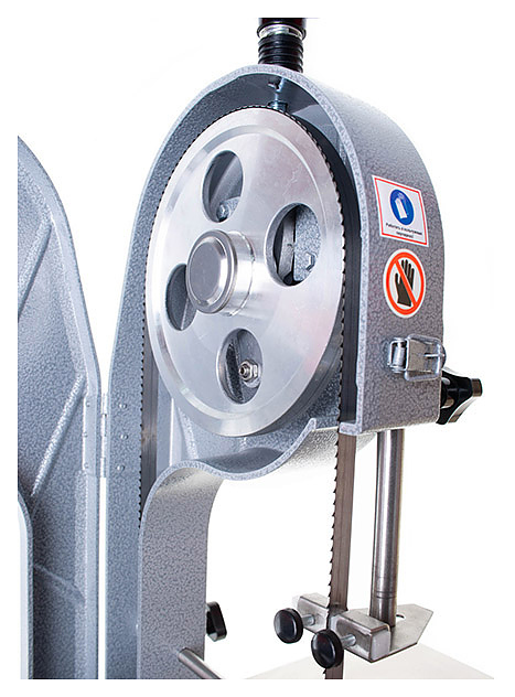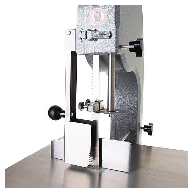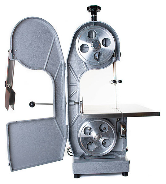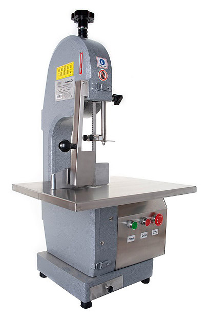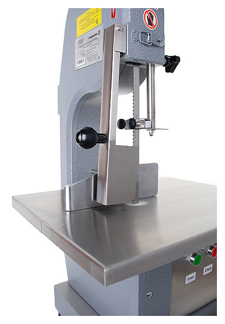 Настольная ленточная пила Foodatlas JG-210 предназначена для нарезки на куски свежих и замороженных мясных продуктов, рыбы и курицы на предприятиях общественного питания и торговли. Модель оснащена кнопочной панелью управления, регулятором ширины реза, ручным натяжным устройством для полотен и неподвижным столом. Корпус выполнен из нержавеющей стали.