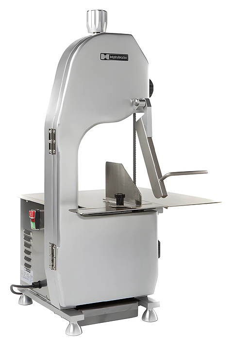 Пила для мяса Hurakan HKN-SE/1650 используется на предприятиях общественного питания и торговли для резки свежего и замороженного мяса, в том числе на кости, а также рыбы и птицы. Модель оснащена толкателем, что обеспечивает безопасную работу персонала. Корпус выполнен из анодированного алюминия.