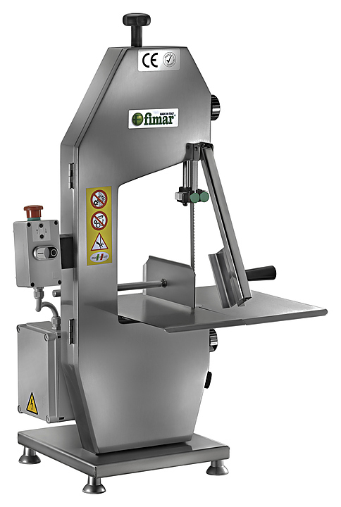 Ленточная пила FIMAR 2020V предназначена для нарезки на куски свежего и замороженного мяса, рыбы и птицы на предприятиях общественного питания и торговли. Модель оснащена аварийной кнопкой, микровыключателем на крышке и тормозом двигателя. Полотно выполняет ровный, гладкий срез без дробления кости. Рабочая поверхность, направляющая пилы и толкатель для мяса выполнены из нержавеющей стали. Корпус изготовлен из окрашенного алюминия.