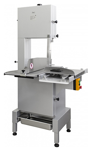 Ленточная пила ROAL Meat J400 предназначена для нарезки на куски свежего и замороженного мяса, рыбы и птицы в небольших цехах, столовых, ресторанах, магазинах и других предприятиях общественного питания и торговли. Модель оснащена ограничительным бортом на обоих направляющих колесах ленточного полотна, запасным пильным полотном и гастроемкостями для сбора мясо-костных опилок. Корпус выполнен из окрашенного металла, плита и подвижной стол - из нержавеющей стали 430.