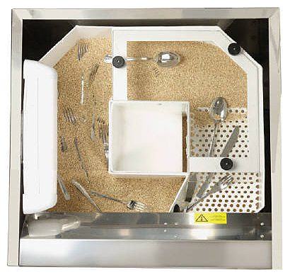 - Экологически чистый гранулят растительного происхождения (рекомендуется менять каждые 4 месяца) очень хорошо впитывает влагу и обеспечивает идеальную полировку столовых приборов