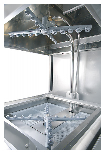 Посудомоечная машина Hi Chief DW-1000+DR+DET+RA ECO предназначена для мытья в кассетах различной посуды, стаканов, чашек и столовых приборов с применением жидких моющих и ополаскивающих средств на предприятиях общественного питания и торговли. Модель оснащена вертикальным подъемным куполом с горизонтальной рукояткой, бойлером, электродвигателем, верхними и нижними моечными рукавами, насосом-дозатором моющего и ополаскивающего средства, дренажным насосом, кабелем питания с вилкой, электромеханической панелью управления с поворотным переключателем и клавишей слива. Корпус и внутренняя облицовка камеры выполнены из нержавеющей стали, моечные рукава – из высококачественного термостойкого пластика.
