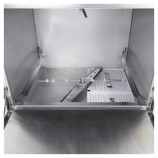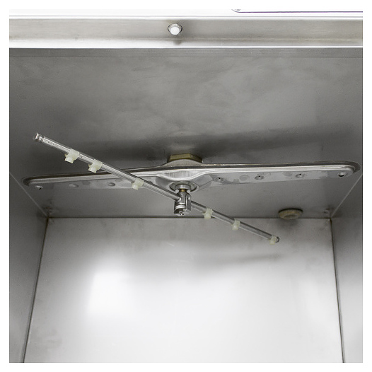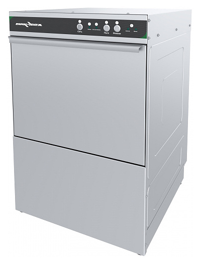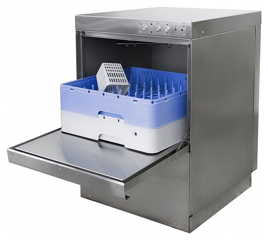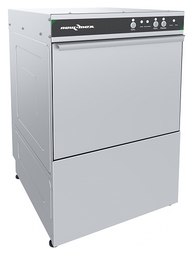 Посудомоечная машина Пищевые Технологии МП-500Ф предназначена для мытья в кассетах различной столовой посуды с применением жидких моющих и ополаскивающих средств на предприятиях общественного питания и торговли. Модель оснащена фронтальной камерой с моечной ванной, бойлером, электронасосом, насосом-дозатором ополаскивающего средства, верхними и нижними моечными рукавами, откидной дверью с горизонтальной рукояткой и кнопочной панелью управления. Камера, дверь и основные детали разбрызгивателей выполнены из нержавеющей стали AISI 304, корпус - из нержавеющей стали AISI 201.