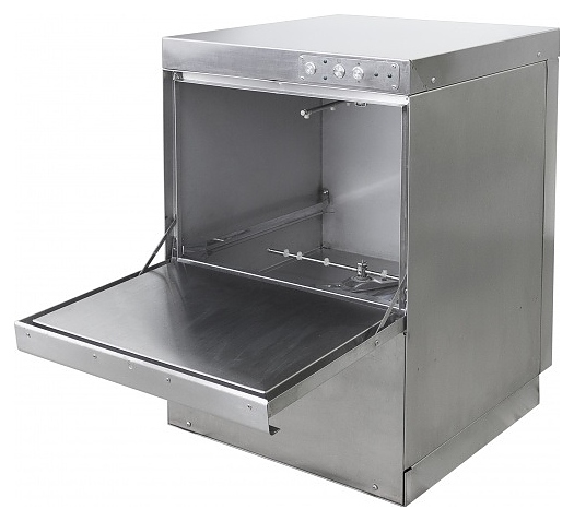 Посудомоечная машина Пищевые Технологии МП-500Ф-01 предназначена для мытья в кассетах различной столовой посуды с применением жидких моющих и ополаскивающих средств на предприятиях общественного питания и торговли. Модель оснащена фронтальной камерой с моечной ванной, бойлером, электронасосом, насосом-дозатором ополаскивающего средства, верхними и нижними моечными рукавами, откидной дверью с горизонтальной рукояткой и кнопочной панелью управления. Камера, дверь и основные детали разбрызгивателей выполнены из нержавеющей стали AISI 304, корпус - из нержавеющей стали AISI 201.