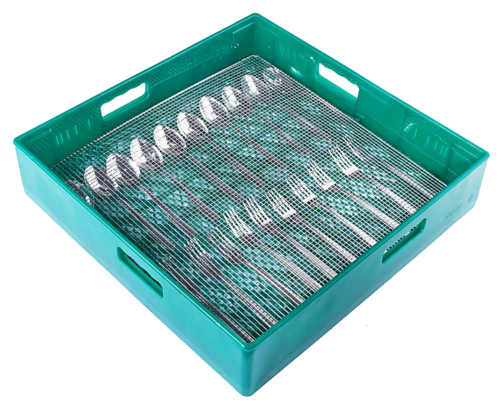 В комплект поставки входят кассеты для мытья тарелок, стаканов и чашек и стакан для приборов.