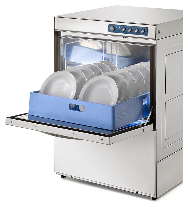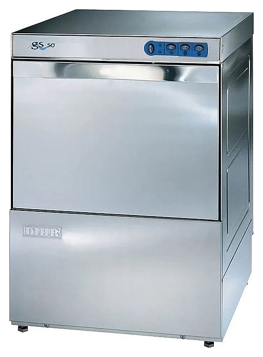 Посудомоечная машина с фронтальной загрузкой Dihr GS 50 используется в барах, ресторанах и гостиницах для мойки стаканов, чашек, небольших тарелок и приборов. Модель оснащена встроенной системой переливной и сливной трубки для тройной защиты моечной помпы и клапаном защиты от обратного тока. Корпус выполнен из нержавеющей стали AISI 304.