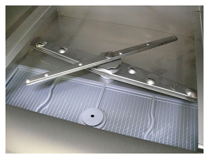 - Нижний вращающийся и верхний фиксированный ополаскивающие рукава