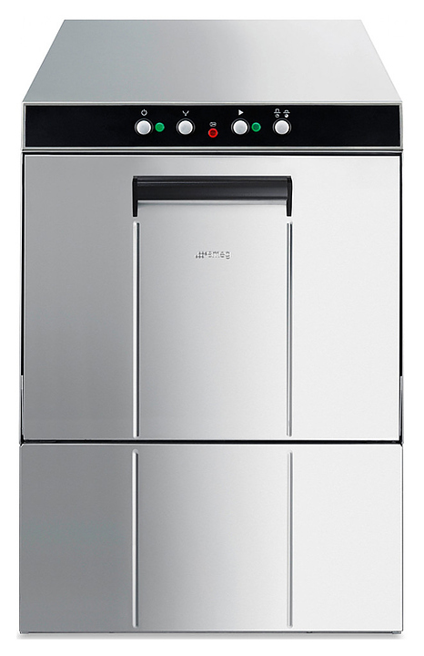 Посудомоечная машина с фронтальной загрузкой Smeg SPD500 серии Ecoline используется на предприятиях общественного питания и торговли для мойки столовых приборов, тарелок, стаканов, чашек и другой посуды. Модель оснащена электромеханической панелью управления и регулируемыми по высоте ножками. Корпус выполнен из нержавеющей стали AISI 304, моющий и ополаскивающий рукав из нержавеющей стали, задняя панель из гальванизированной стали, фильтр моечного бака из пластика.