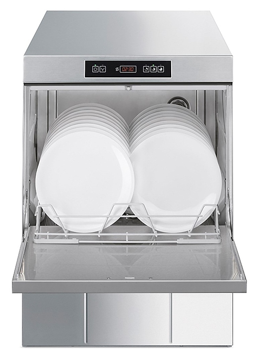 Ecoline используется на предприятиях общественного питания и торговли для мойки столовых приборов, тарелок, стаканов, чашек в кассетах, а также гастроемкостей и другой посуды. Модель оснащена электронной панелью управления с TFT-дисплеем, дверцей с двойными стенками и уплотнителем с 3 сторон и регулируемыми по высоте ножками. Бак выполнен из нержавеющей стали AISI 304, моющие и ополаскивающие рукава - из нержавеющей стали, фильтр - из пластика.