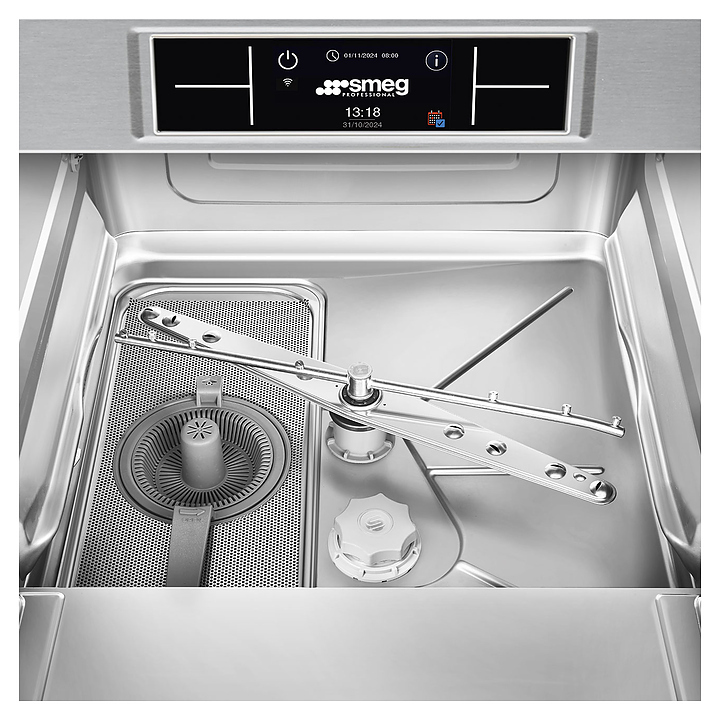 Посудомоечная машина с фронтальной загрузкой SMEG SPD525 серии Pura используется на предприятиях общественного питания и торговли для мойки столовых приборов, тарелок, стаканов, чашек и другой посуды. Модель оснащена электронной панелью управления и регулируемыми по высоте ножками. Цельнотянутый моечный бак выполнен из нержавеющей стали AISI 304, раздельные моющие и ополаскивающие рукава и фильтр моечного бака - из нержавеющей стали.