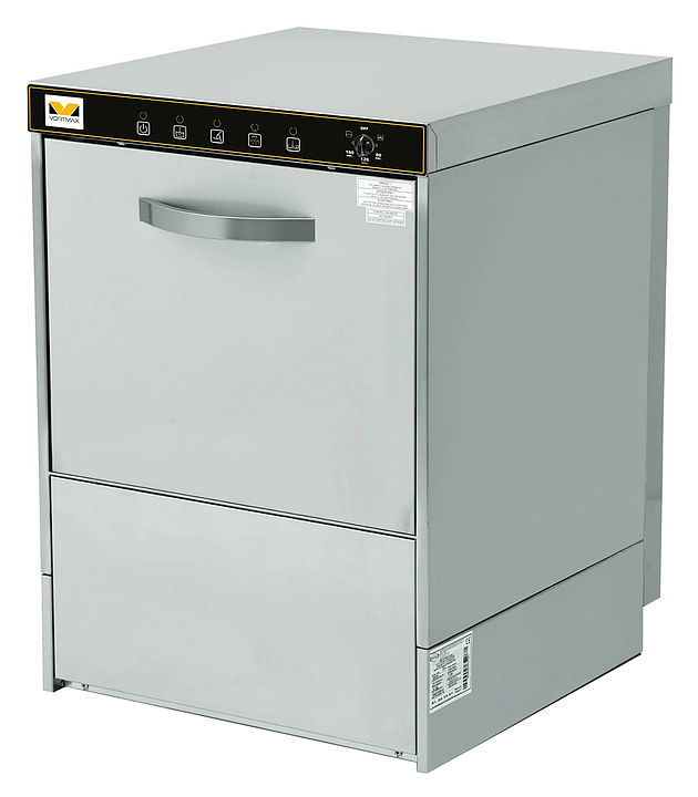 Посудомоечная машина Vortmax EV-F500 используется на предприятиях общественного питания и торговли для мойки тарелок, стаканов, бокалов и столовых приборов. Модель оснащена электромеханической панелью управления, дозаторами моющего и ополаскивающего средств и 3 циклами мойки. Рукава выполнены из пластика.