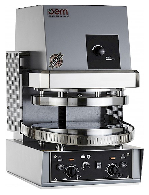 Термический пресс для пиццы OEM-ALI PF33MT SV4 используется на предприятиях пищевой промышленности, общественного питания и торговли, в пекарнях и кондитерских для получения круглой тестовой основы (краста) для дальнейшего приготовления пиццы. Модель оснащена механическим приводом и раздельными термостатами для контроля температуры верхней и нижней пластин. Края пластин загнуты на 2 мм, что позволяет получить заготовку с бортиками.