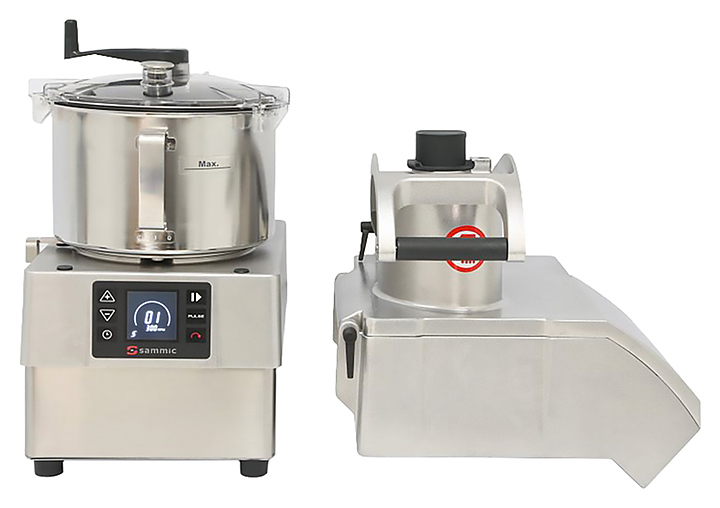 Кухонный процессор Sammic CK-35V предназначен для всех видов нарезки, измельчения и смешивания продуктов на предприятиях общественного питания и торговли. Модель сочетает в себе функции овощерезки и куттера, оснащена интуитивно понятной панелью управления, универсальной головкой, емкостью со встроенным миксером и лезвиями с микрозубьями. Блок электродвигателя выполнен из нержавеющей стали, головка - из алюминия, чаша - из нержавеющей стали с крышкой из поликарбоната.