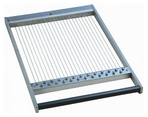 Струнная рамка? Pavoni TCH15 используется совместно с машинами Chitarra и Chitarra Doppio Taglio BCD/I в пекарнях и кондитерских, на предприятиях пищевой промышленности и общественного питания для нарезки бисквита, мягкого шоколада, ганаша и других кондитерских масс на заготовки одинакового размера. Модель оснащена тонкими металлическими струнами, расположенными через каждые 15 мм. Изделие выполнено из нержавеющей стали.