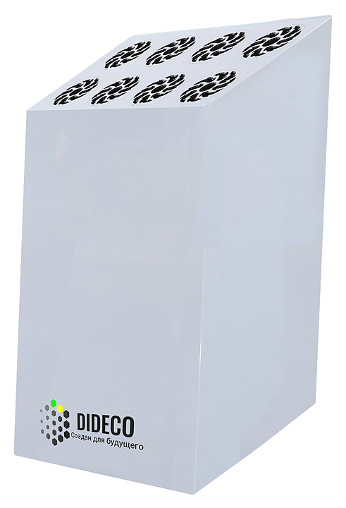 Бактерицидный рециркулятор DIDECO МАКС ХОЛЛ 1200 ?используется на предприятиях общественного питания и торговли, в офисах, образовательных и медицинских учреждениях, а также в других местах общественного пользования для обеззараживания воздуха в помещениях. Модель работает на 8 бактерицидных лампах, производящих ультрафиолетовое излучение, которое губительно влияет на практически все известные вирусы, болезнетворные бактерии и грибы. Корпус выполнен из металла с порошковым окрашиванием.
