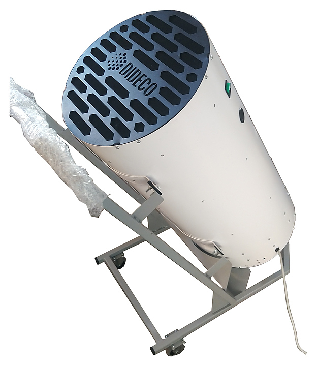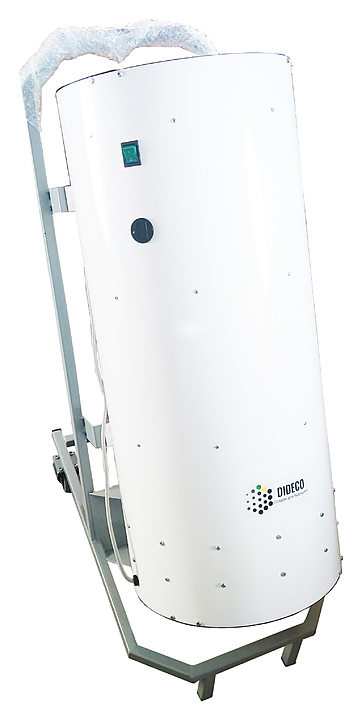 Бактерицидный рециркулятор DIDECO МАКС ХОЛЛ 1500 ?используется на предприятиях общественного питания и торговли, в офисах, образовательных и медицинских учреждениях, а также в других местах общественного пользования для обеззараживания воздуха в помещениях. Модель работает на 8 бактерицидных лампах UVC-15W, производящих ультрафиолетовое излучение, которое губительно влияет на практически все известные вирусы, болезнетворные бактерии и грибы. Корпус выполнен из металла с порошковым окрашиванием.
