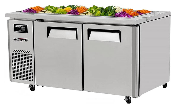 Холодильный салат-бар Turbo air KSR15-2-750 предназначен для кратковременного хранения ингредиентов для приготовления салатов на предприятиях пищевой промышленности, общественного питания и торговли. Модель оснащена 2 дверцами с эргономичными ручками, 2 регулируемыми полками и 4 колесами. Корпус выполнен из нержавеющей стали (гальванизированная сталь на оборотной стороне и внизу), пол - из нержавеющей стали с алюминиевыми вставками по бокам и сзади, дверные петли и направляющие для гастроемкостей - из высококачественной нержавеющей стали, полки - из толстой стальной проволоки с виниловым покрытием, уплотнение - из ABS-пластика.