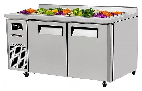 Холодильный салат-бар Turbo air KSWR15-2-700 предназначен для кратковременного хранения ингредиентов для приготовления салатов на предприятиях пищевой промышленности, общественного питания и торговли. Модель оснащена 2 дверцами с эргономичными ручками, 2 регулируемыми полками и 4 колесами. Корпус выполнен из нержавеющей стали (гальванизированная сталь на оборотной стороне и внизу), пол - из нержавеющей стали с алюминиевыми вставками по бокам и сзади, дверные петли и направляющие для гастроемкостей - из высококачественной нержавеющей стали, полки - из толстой стальной проволоки с виниловым покрытием, уплотнение - из ABS-пластика.