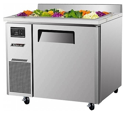 Холодильный салат-бар Turbo air KSWR9-1-700 предназначен для кратковременного хранения ингредиентов для приготовления салатов на предприятиях пищевой промышленности, общественного питания и торговли. Модель оснащена дверцей с эргономичной ручкой, регулируемой полкой и 4 колесами. Корпус выполнен из нержавеющей стали (гальванизированная сталь на оборотной стороне и внизу), пол - из нержавеющей стали с алюминиевыми вставками по бокам и сзади, дверные петли и направляющие для гастроемкостей - из высококачественной нержавеющей стали, полка - из толстой стальной проволоки с виниловым покрытием, уплотнение - из ABS-пластика.