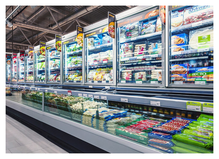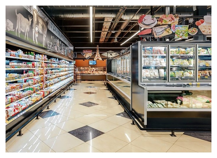 - Комбинированное решение дает возможность продемонстрировать как сыпучие товары, так и продукты в упаковке