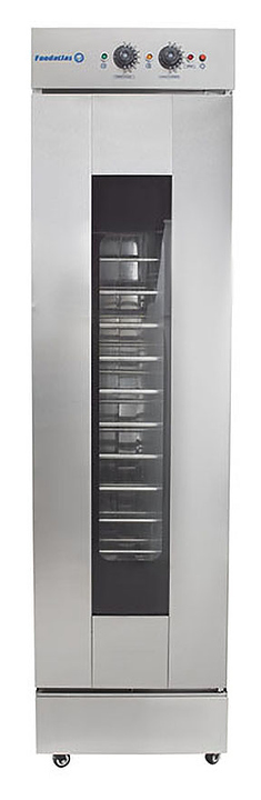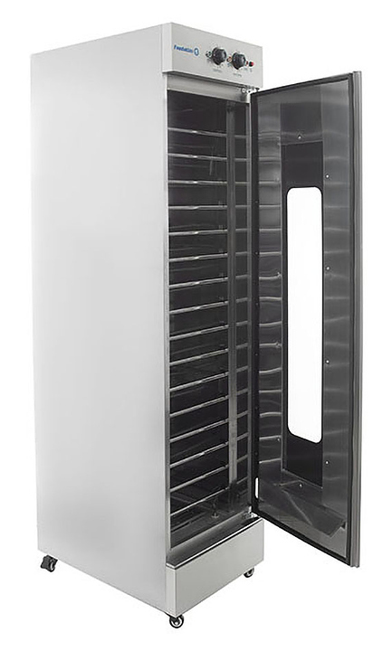 Расстоечный шкаф Foodatlas FJ-16 предназначен для расстойки замороженного теста, заготовок для выпечки хлебобулочных изделий, а также для поддержания готовых изделий в горячем виде на предприятиях общественного питания и торговли. Оборудование оснащено панелью управления с термостатом и индикаторами нагрева и сети. Корпус выполнен из нержавеющей стали AISI 430 толщиной 0,5 мм, резервуар для воды - из нержавеющей стали AISI 201, направляющие для противней - из алюминия, смотровое окно на дверце - из стекла толщиной 5 мм, кабель - из меди.