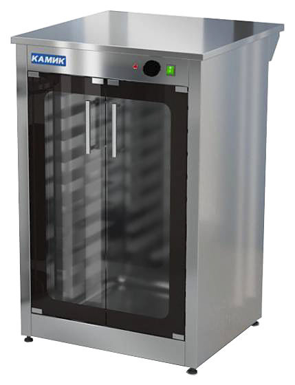 Расстоечный шкаф КАМИК 500х600х900 мм используется на предприятиях общественного питания и торговли для расстойки теста перед выпеканием кондитерских и хлебобулочных изделий. Модель оснащена поддоном для воды и распашными стеклянными дверьми. Корпус выполнен из стали AISI 430.