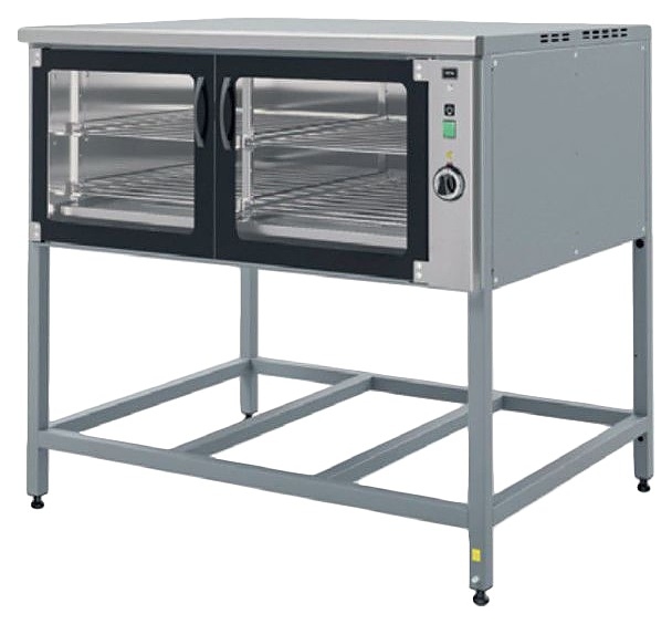 Расстоечный шкаф KAYMAN ШРЭ-4-11-МХ используется на предприятиях пищевой промышленности, общественного питания и торговли для подготовки дрожжевого теста к выпеканию при оптимальных условиях, в процессе расстойки заготовка увеличивается в объеме, приобретает пористую структуру благодаря насыщению углекислым газом, внешняя поверхность становится гладкой и эластичной. Модель оснащена рабочей камерой с 2 трубчатыми электронагревателями (ТЭНами), 2 уровнями с направляющими, 4 решетчатыми полками – по 2 на уровень, 2 ваннами для воды, 2 распашными дверьми, крышей и электромеханической панелью управления. Фронт выполнен из нержавеющей стали.