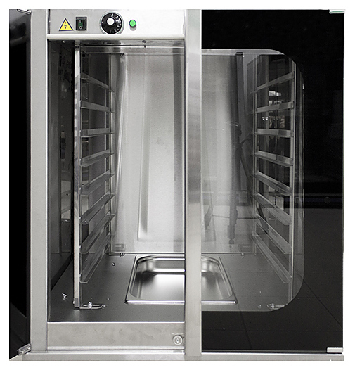 Расстоечный шкаф Пищевые Технологии ШР-930-8 К используется в пекарнях, кондитерских, на предприятиях общественного питания и торговли для расстойки тестовых заготовок, в процессе которой тесто увеличивается в объеме и приобретает ровную поверхность, восстанавливается его пористость. Корпус и камера выполнены из нержавеющей стали, дверцы - из стекла.