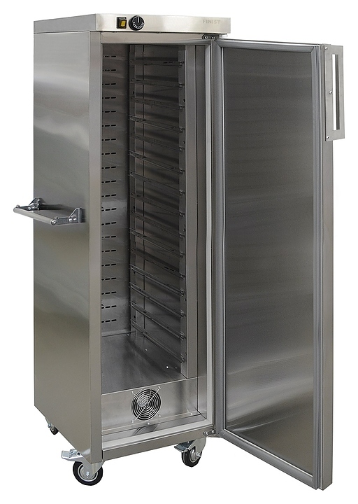 Мобильный тепловой шкаф Finist ШТП15 используется в кейтеринговых компаниях, на предприятиях общественного питания и торговли для длительного поддержания в горячем состоянии, транспортировки и подачи готовых блюд. Модель оснащена рабочей камерой с 15 уровнями встроеннных направляющих для гастроемкостей, глухой распашной дверью с короткой вертикальной рукояткой и электромеханической панелью управления. Корпус выполнен из высококачественной нержавеющей стали.