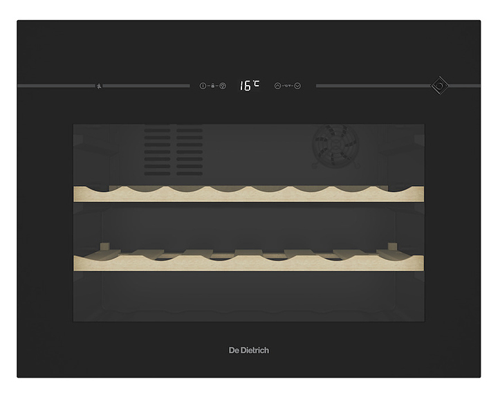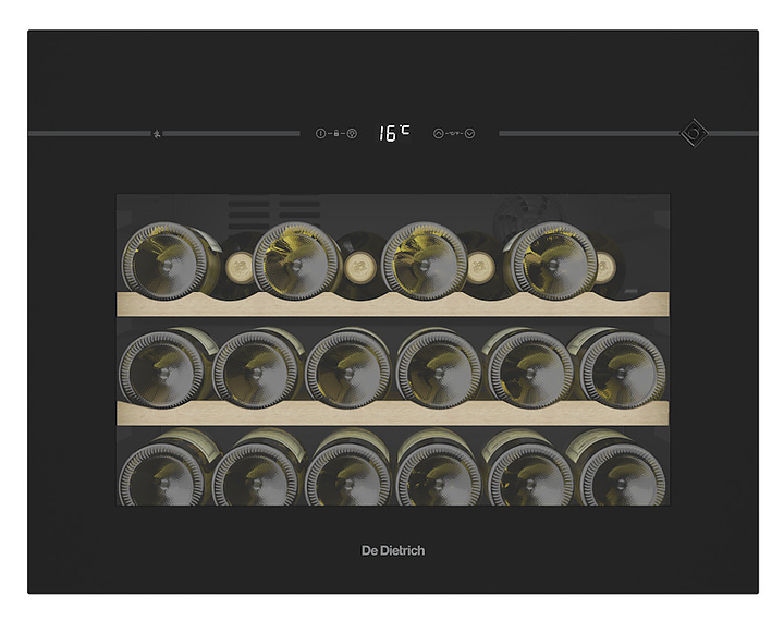 Винный шкаф De Dietrich DIW28FB из коллекции Philharmonie предназначен для демонстрации, охлаждения и хранения винных напитков на предприятиях торговли, общественного питания, в коттеджах и частных домах. Модель оснащена цифровым дисплеем, сенсорным управлением, светодиодным освещением и 2 съемными полками. Полки выполнены из дерева, дверь - из стекла с УФ-фильтром.