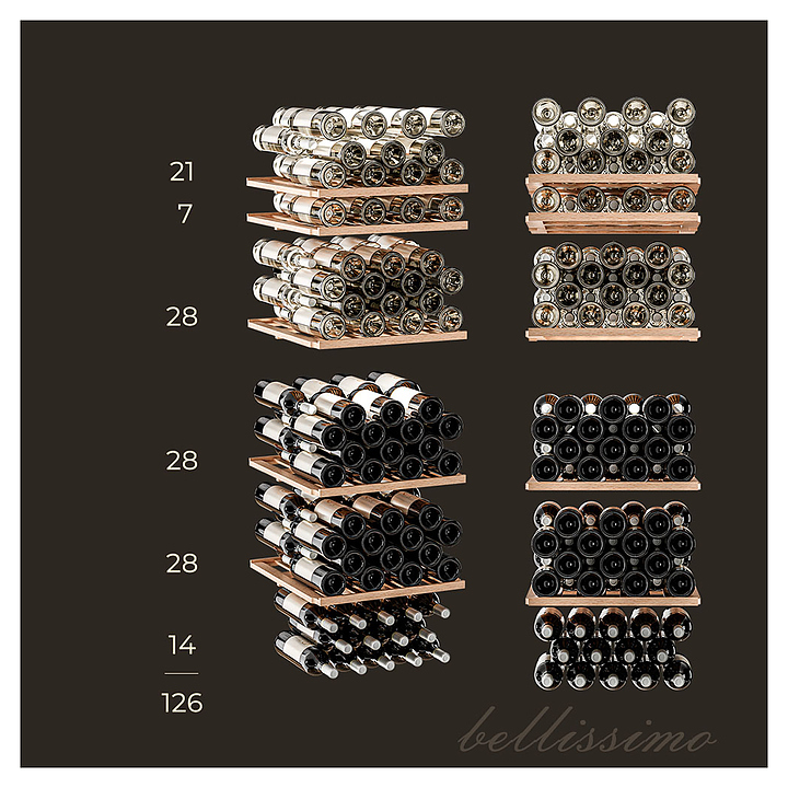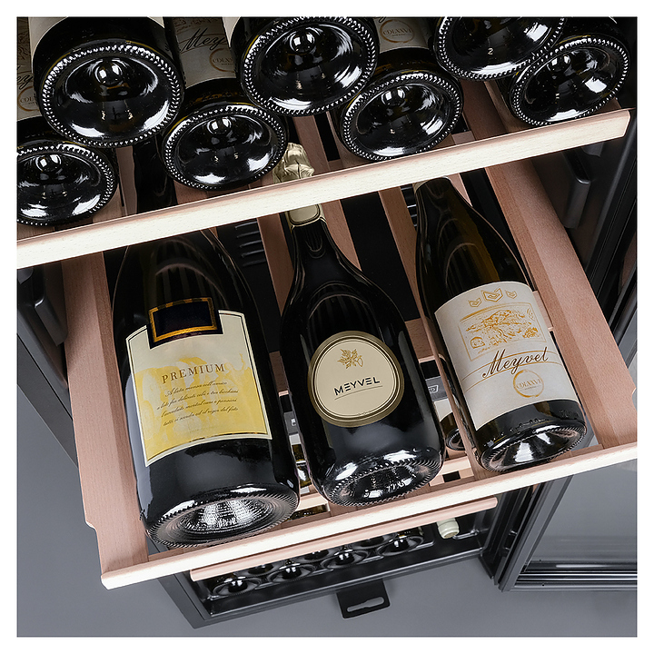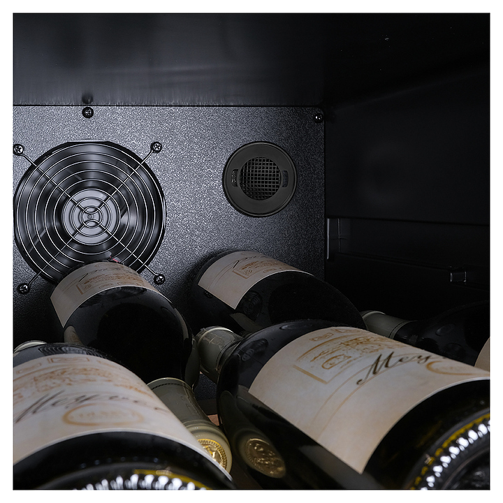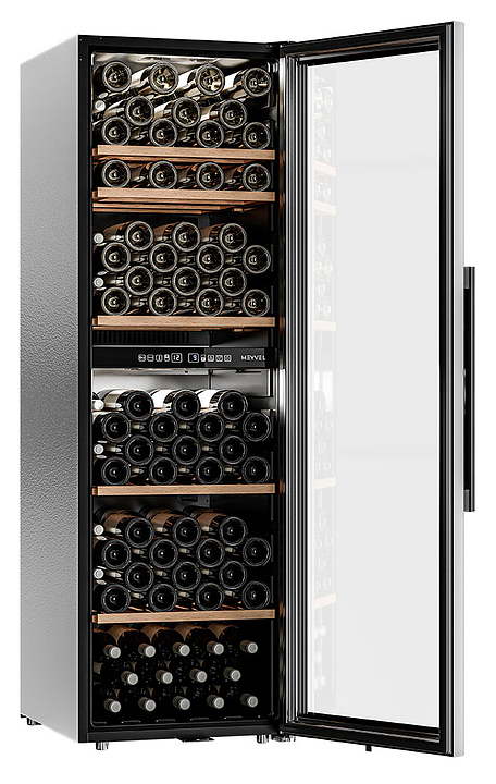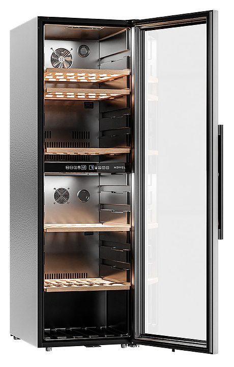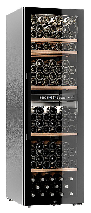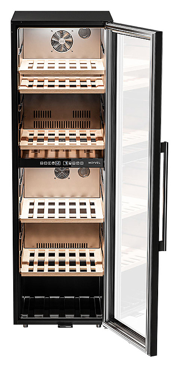 Винный шкаф MEYVEL MV126-KBF2 предназначен для демонстрации, хранения и создания оптимальных условий для сохранения всех вкусовых свойств вина в бутылках на предприятиях общественного питания, торговли, в барах, ресторанах, специализированных магазинах, частных домах или квартирах. Модель оснащена сенсорной панелью управления, демонстрационным освещением, ручкой и регулируемыми ножками. Угольный фильтр очищает воздух внутри шкафа от посторонних запахов. Корпус выполнен из стали, дверь - из тройного стекла с УФ-фильтром, полки - из массива бука.