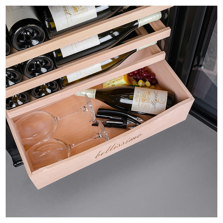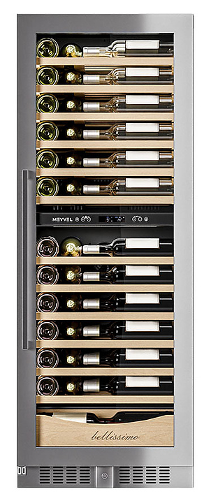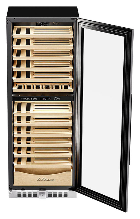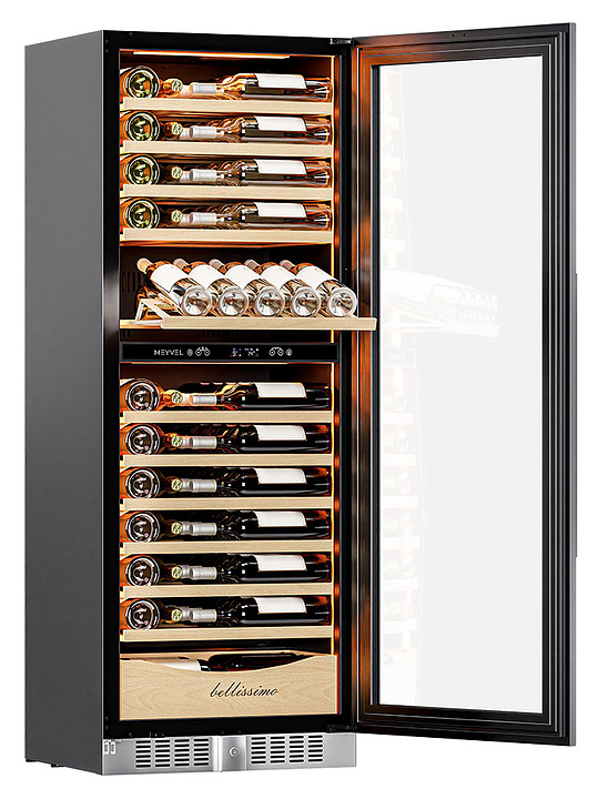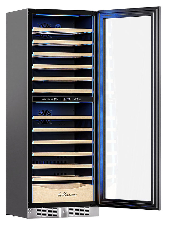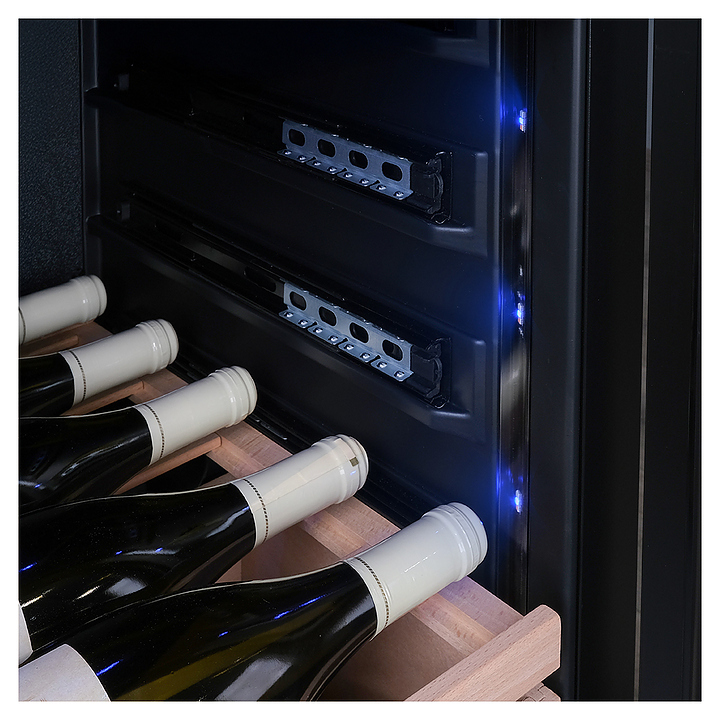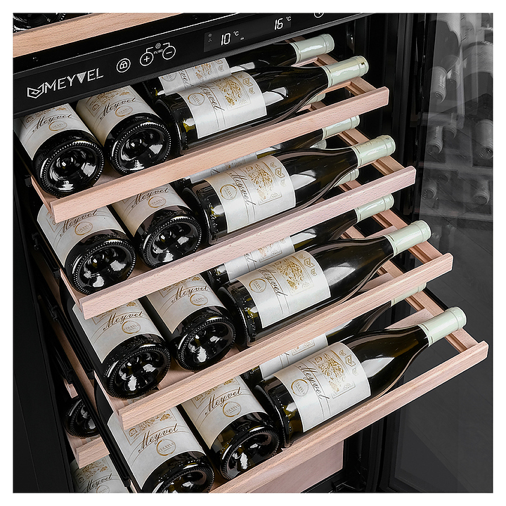 Винный шкаф MEYVEL MV95-KST2 (Slim) предназначен для демонстрации, хранения и создания оптимальных условий для сохранения всех вкусовых свойств вина в бутылках на предприятиях общественного питания, торговли, в барах, ресторанах, специализированных магазинах, частных домах или квартирах. Модель оснащена сенсорной панелью управления, демонстрационным освещением, ручкой и регулируемыми ножками. Угольный фильтр очищает воздух внутри шкафа от посторонних запахов. Корпус выполнен из стали, дверь - из тройного стекла с УФ-фильтром, полки - из массива бука.