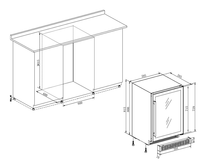 - Высота дверцы: 715 мм