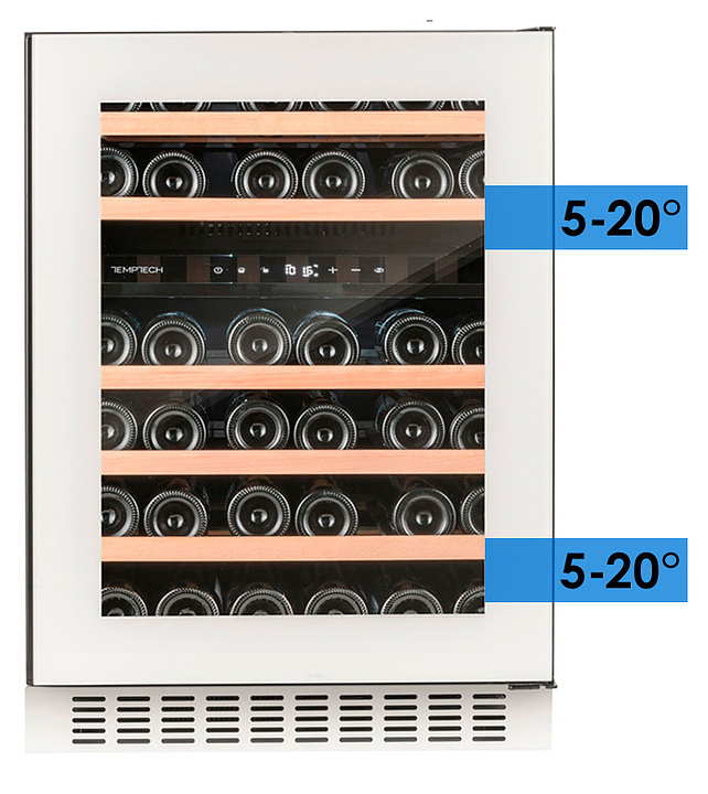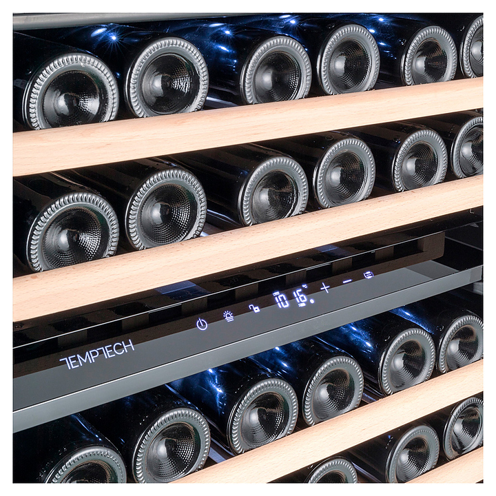Винный шкаф Temptech Oslo OX60DRW-24 предназначен для охлаждения, хранения и демонстрации бутилированного вина в отелях, винных магазинах, на предприятиях общественного питания и торговли. Модель оснащена 2 физически разделенными температурными зонами, внутренней светодиодной подсветкой, сенсорной панелью, цифровым дисплеем и вентиляторами для циркуляции воздуха, поддержания постоянной и стабильную температуры. Дверца выполнена из стекла с УФ-фильтром, полки - из бука.