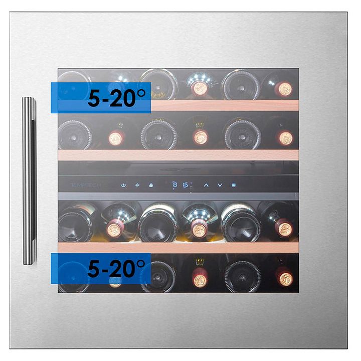 Винный шкаф Temptech Oslo OZ60DX-24 предназначен для охлаждения, хранения и демонстрации бутилированного вина в отелях, винных магазинах, на предприятиях общественного питания и торговли. Модель оснащена 2 физически разделенными зонами, внутренней светодиодной подсветкой, сенсорной панелью, цифровым дисплеем и вентиляторами для циркуляции воздуха, поддержания постоянной и стабильную температуры. Дверца выполнена из стекла с УФ-фильтром, фасад - из стали, полки - из бука.