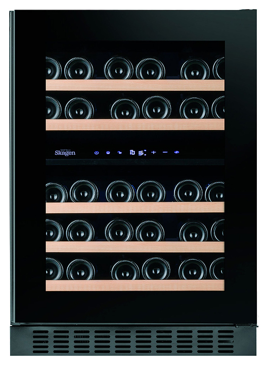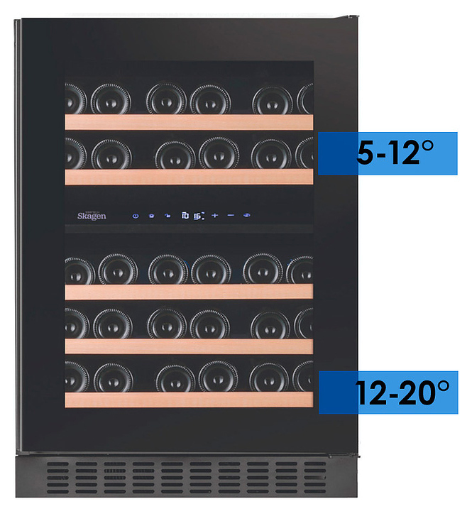 Винный шкаф Temptech Skagen SKX6070DRB предназначен для охлаждения, хранения и демонстрации бутилированного вина в отелях, винных магазинах, на предприятиях общественного питания и торговли. Модель оснащена 2 температурными зонами, внутренней светодиодной подсветкой, сенсорной панелью, цифровым дисплеем и активным вентилятором для равномерного распределения температуры. Дверца выполнена из стеклопакета с аргоном, полки - из натурального дерева.
