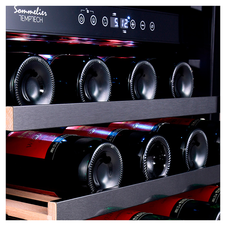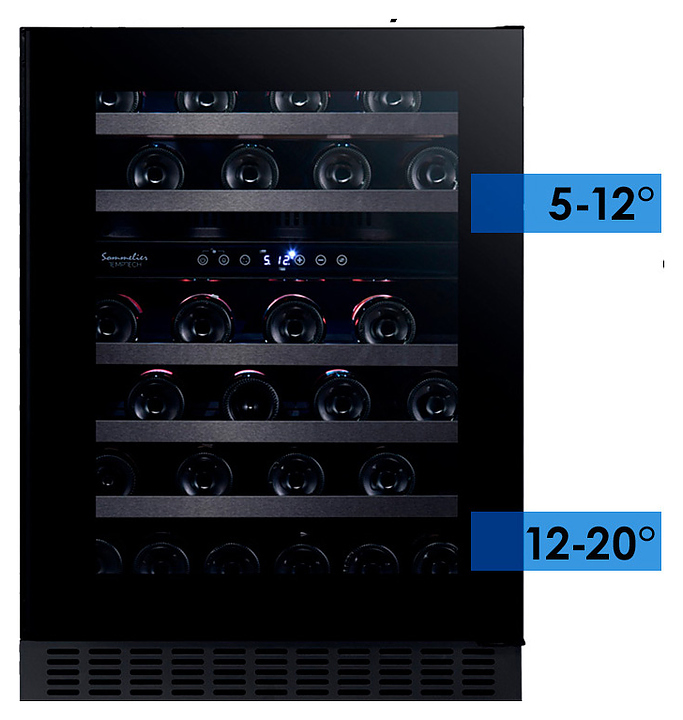 Винный шкаф Temptech Sommelier SOMX60DRB-24 предназначен для охлаждения, хранения и демонстрации бутилированного вина в отелях, винных магазинах, на предприятиях общественного питания и торговли. Модель оснащена 2 температурными зонами, внутренней светодиодной подсветкой, сенсорной панелью и цифровым дисплеем. Дверца выполнена из двойного стекла с УФ-фильтром, полки - из дерева.