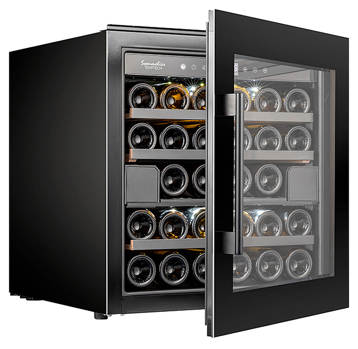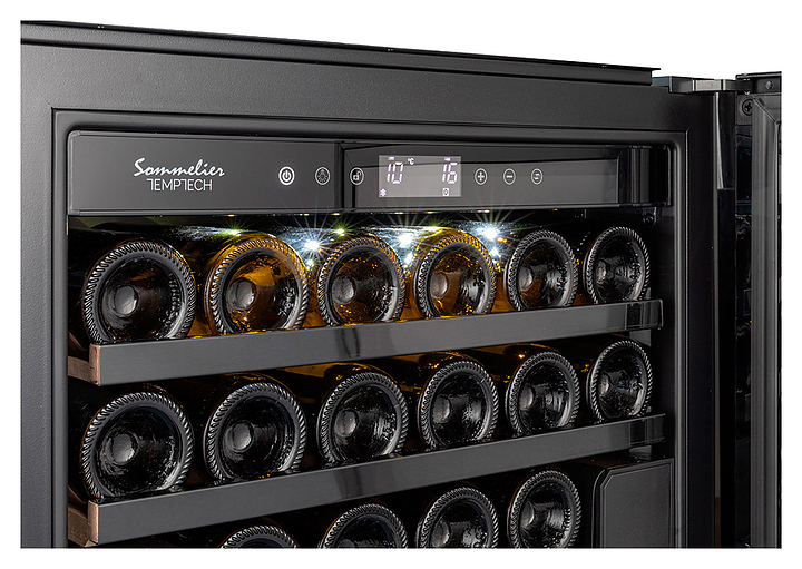 Винный шкаф Temptech Sommelier SOMZ60DB-24 предназначен для охлаждения, хранения и демонстрации бутилированного вина в отелях, винных магазинах, на предприятиях общественного питания и торговли. Модель оснащена 2 температурными зонами, внутренней светодиодной подсветкой, сенсорной панелью, цифровым дисплеем и активным вентилятором для равномерного распределения температуры. Дверца выполнена из стекла, полки - из бука.